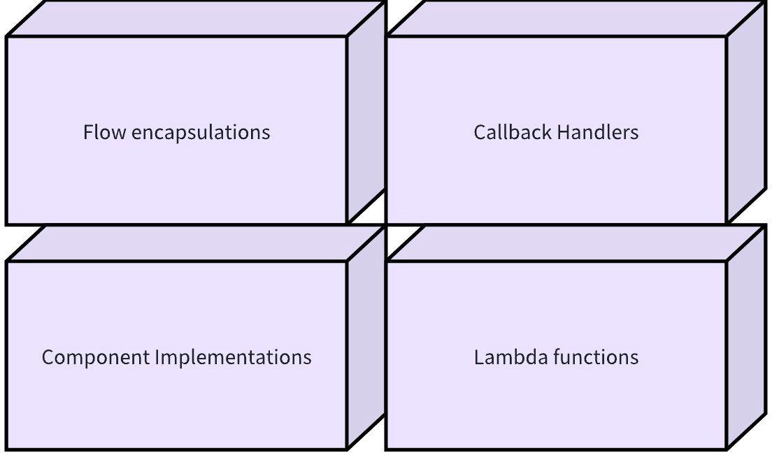 Building on clear component definitions, we believe that LLM application development has universal foundational capabilities, including but not limited to: streaming programming capabilities for handling model output; Callback capabilities for supporting aspect functionality and exposing internal component state; option extension capabilities beyond the component interface definition scope for specific implementations.